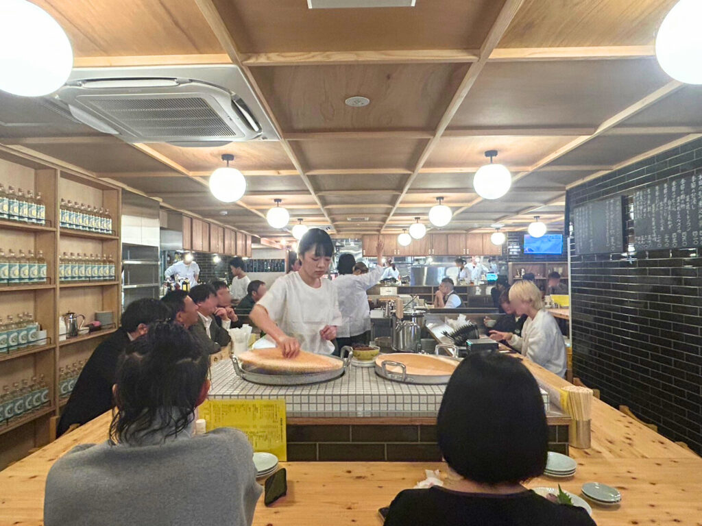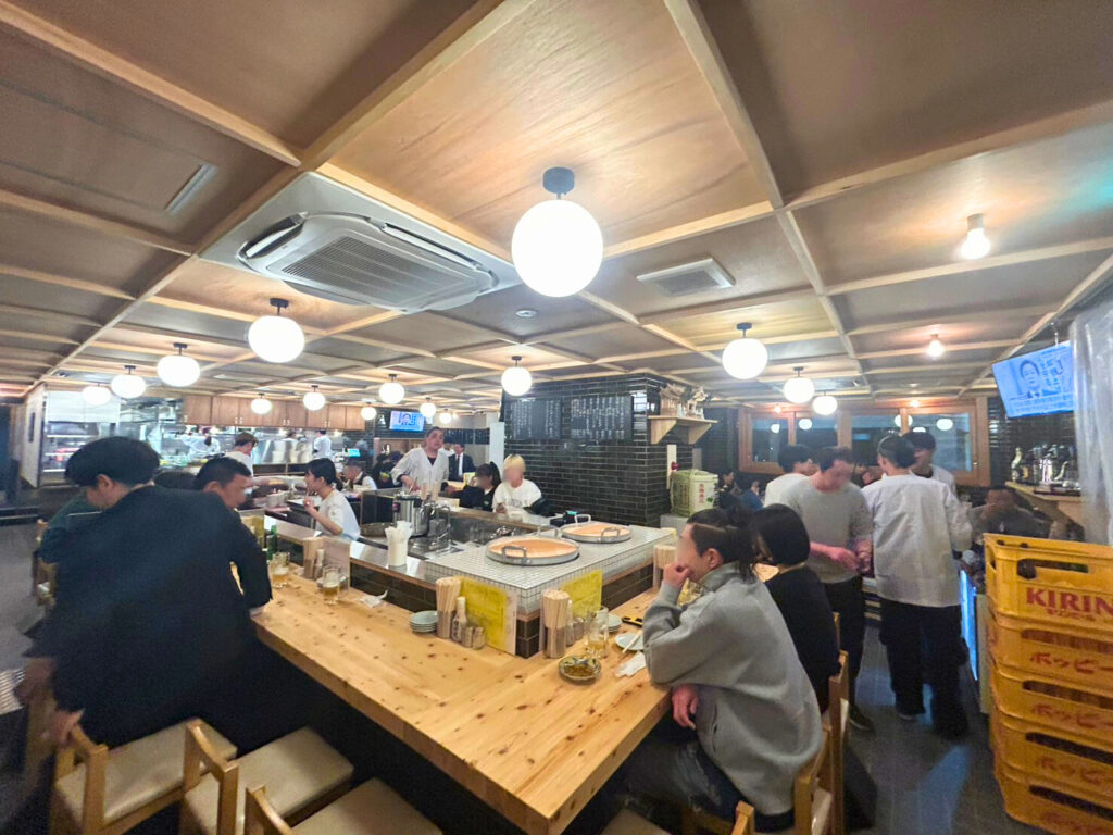 このコの字カウンターの時点でもう優勝。左に金宮ボトル棚、右にメニュー札、奥行きのある広々空間。スタッフもおそらく20代が多く、声が大きく笑顔で活気がある。ワクワク感の演出が素晴らしい。