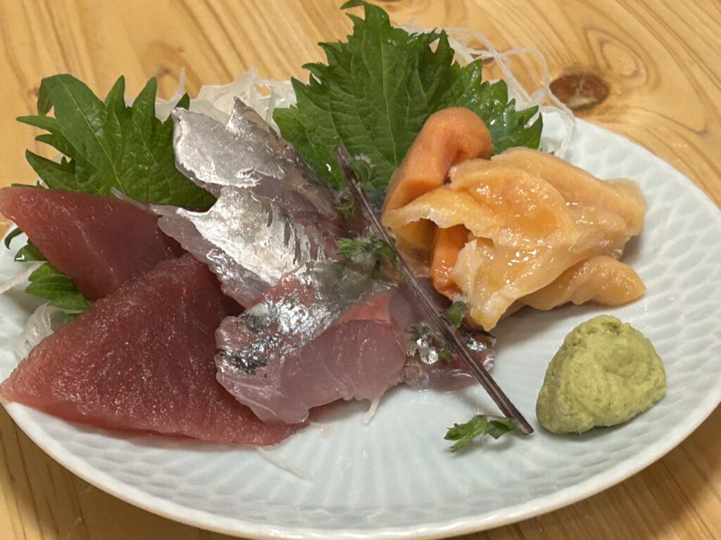 刺身3点盛り(アジ、マグロ、ミル貝)